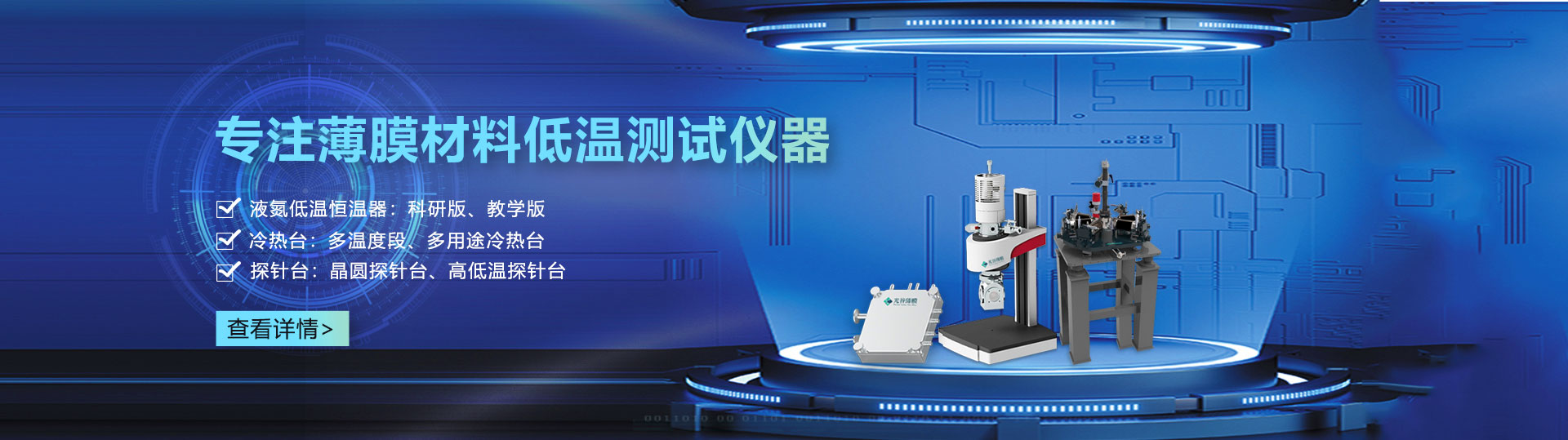 專注于液氮低溫恒溫器、冷熱臺、探針臺等薄膜材料測試儀器的研發以及技術服務